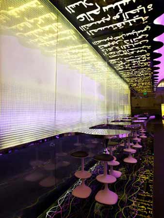 概要: 設(shè)計(jì)師KarimRashid完成了迪拜的一個(gè)餐廳的室內(nèi)部分,名為Switch。餐廳的主要特色是波狀的墻,還可以不斷的變色。頂面的裝飾是發(fā)光的***字句。設(shè)計(jì)師Rashid說(shuō):“這個(gè)強(qiáng)的靈感是來(lái)自于***字母S,關(guān)鍵是他的側(cè)邊?!疭hin’就像是希臘的西格瑪(傳說(shuō)中的西格瑪---∑)”餐廳的波狀墻面想給人帶來(lái)的是強(qiáng)烈的對(duì)稱視覺(jué),環(huán)繞在這個(gè)空間中。