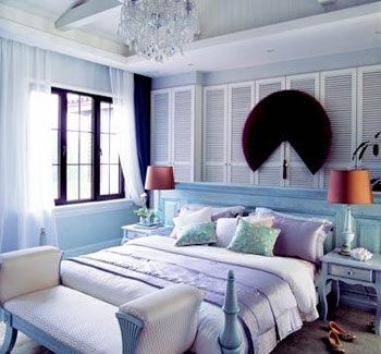 實(shí)用主義和浪漫主義可以在臥室中并存,藍(lán)白色調(diào)浪漫而沉靜,藍(lán)色清透與白色的安靜相互映襯,有著海一般的夢幻感覺,優(yōu)雅的配色似如歌的行板,浪漫溫馨,裝點(diǎn)出如水一般純凈又內(nèi)涵豐富的臥室氛圍。