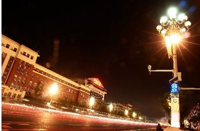 為迎接新中國60年華誕,華燈和路燈作為長安街不可或缺的配套設(shè)施,從今年4月開始進行了50年來首次大規(guī)模改造。主體工程分三個階段:西段從復(fù)興門至西單北大街,新立、更換單弧鐵桿路燈69基;中段從西單北大街至人大西側(cè)路,道路南側(cè)29基華燈整體南移17.6米;東段從東單北大街至建國門,撤除道路南北兩側(cè)主輔隔離帶原有路燈,新立路燈73基,沿線重要路口加裝18米鐵桿燈5基。