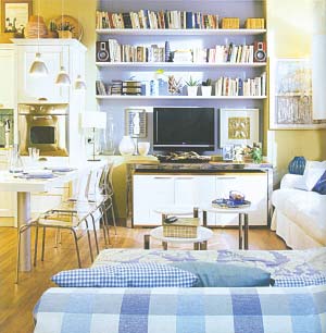 緊湊的家具擺設、可伸縮家具的選擇、功能區(qū)域的劃分,讓小屋顯得井然有序。與心愛的人共住如此精致的小屋,相信生活早已變成無形的樂趣。而聰明的讀者,也將通過這間小屋學到許多節(jié)省空間、擴大空間使用功能的有效辦法。