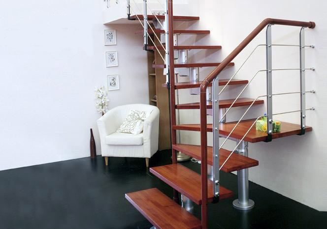 木質(zhì)樓梯是市場(chǎng)占有率最大的一種,因?yàn)槟静谋旧碛袦嘏?,加之與地板材質(zhì)和色彩容易搭配,施工相對(duì)也較方便。選擇木制品做樓梯要注意在選擇地板時(shí)對(duì)樓梯地板尺寸的配置,目前市場(chǎng)上地板才尺寸以90cm長(zhǎng)、10cm寬為最多,但樓梯地板可以配120cm長(zhǎng)、15cm寬的地板,這樣一閣樓只要兩塊就夠了,可少一道接縫,也容易施工和保養(yǎng)。對(duì)柱子和扶手的選擇,因做到木材和款式盡量般配。