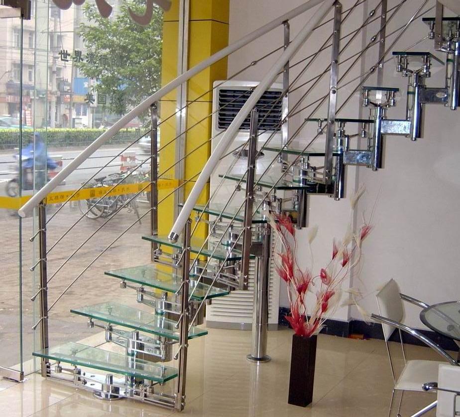 這是目前的新款式,比較適合現(xiàn)代派年輕人。玻璃大都用磨砂的,不是透明,厚度在10mm以上。這類(lèi)樓梯也用木制品做扶手。價(jià)格比進(jìn)口大理石低一點(diǎn)。