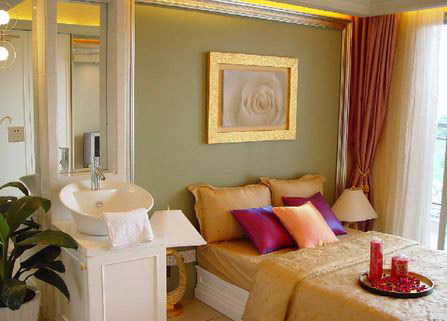 一個讓人心身解放的空間,一種舒適浪漫的情調(diào)。粉紅的色系、飄逸的絲綢、精細的飾品、婉約的風格,簡約且細膩,就像王家衛(wèi)的《花樣年華》,迷失在粉色旗袍包裹的玲瓏有致的女性曲線中。