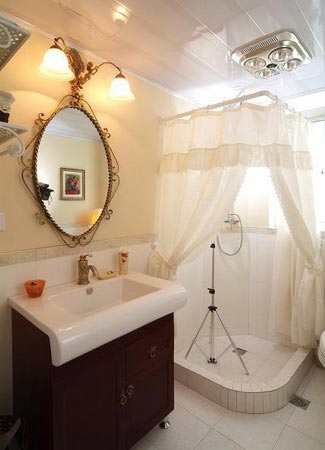 男主人是個(gè)很疼愛(ài)妻子的人,整個(gè)房子裝修得都很花俏,較為女性化。但不影響陽(yáng)剛之美,衛(wèi)生間里深色的浴室柜配以鐵藝造型花邊的鏡子,讓人并覺(jué)得突兀,反而更加潮流之美。