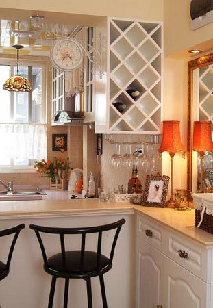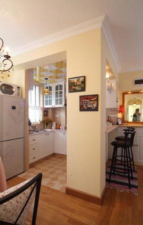 換個(gè)角度來(lái)看廚房間的吧臺(tái),雖然廚房間空間小,卻并不顯排擠。