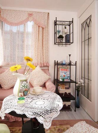 粉色布藝沙發(fā),配以淺粉色碎花抱枕,讓家倍感溫馨。