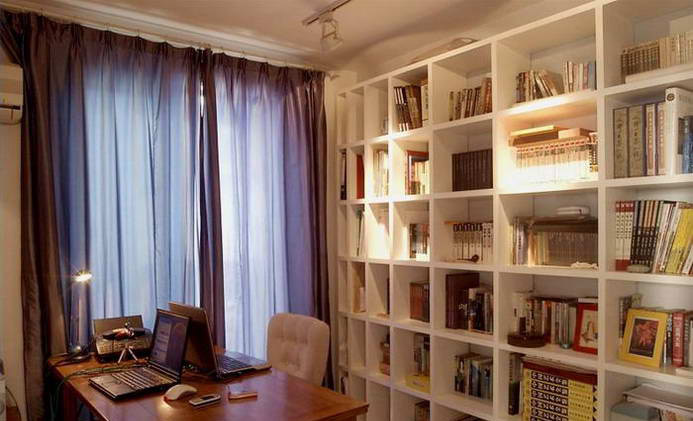 可能這個(gè)書(shū)房是整個(gè)家里最具陽(yáng)剛氣息的地方了。這里是男主人的天地嗎?其實(shí)你錯(cuò)了,男主人是個(gè)很疼妻子的人,臺(tái)面上兩個(gè)相對(duì)電腦就知道,其實(shí)這是他們夫妻兩人共同的書(shū)房。