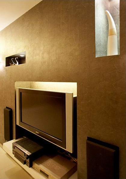 嵌在在墻壁里的老式音響,是業(yè)主結(jié)婚后家人送的禮物,有紀(jì)念價意義,不會舍丟棄,所以設(shè)計以外觀上做了些改變,雖然丟失了一些音效效果,但是同整個家居設(shè)計更加相符合。