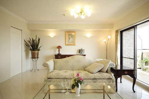 客廳內(nèi)裝修材料全是統(tǒng)一為白色,通過素材或間接照明等讓整個空間產(chǎn)生深淺有致的變化,豐富了原本單調(diào)的感覺和印象。
