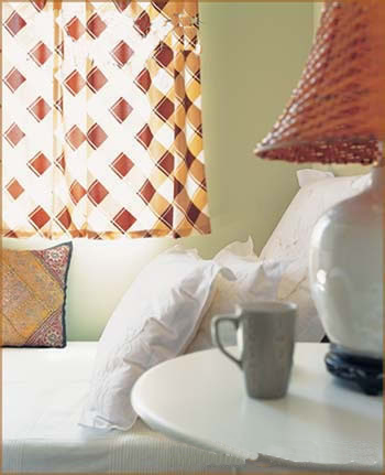 臥室墻壁刷了豆綠色,再將床上用品換成白色的,就已經(jīng)很寧?kù)o了。不過(guò)這樣的話房間缺少層次和韻味,所以搭配上棕色配飾。燈罩換成藤編的,窗簾也換成棕色黃色白色相間的格紋。白色床品5件套90元官園小商品批發(fā)市場(chǎng)。 上海裝潢網(wǎng)