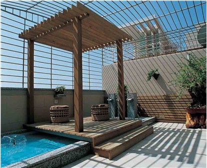 第二步:做設計一定要告訴設計師,陽臺上除了布置景觀外,有沒有其他設計。如果陽臺上搭玻璃棚,那么栽種的植物要喜濕喜熱。如果陽臺上有一角要做儲藏室,那么那塊角落附近一定不能種太多植物,否則儲藏室有潮氣。