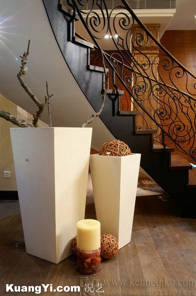 ▲螺旋向上式樓梯。這種樓梯優(yōu)點在于具有強(qiáng)烈的動態(tài)美,多在廳堂偏中部位旱地拔蔥。由于不靠墻,圍欄不能借助墻體,需加上透空欄桿,這就更好地表現(xiàn)了樓梯的藝術(shù)之魅。但這種樓梯由于每一段跨度較多,因此安全性較差。有老人和學(xué)齡前兒童的家庭,建議慎重使用。