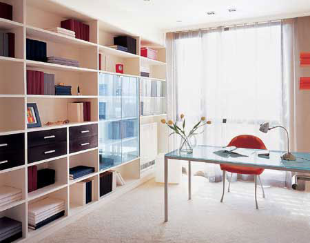 在設計新概念書房時,首先對你的藏書來個大整理?;逎D深的研究類,輕松消閑的娛樂類,技術應用類,感人肺腑的小說類,將所有書籍分門別類整理好,使之井然有序,方便參閱。上海裝潢網