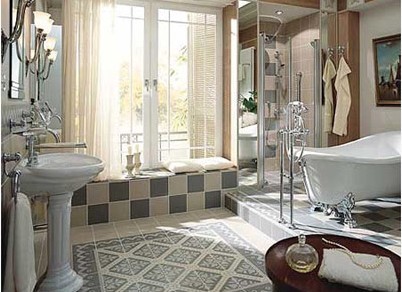 概要: 當(dāng)秋天的腳步漸行漸近,我們在感召中回歸自然的無限風(fēng)情。也許正因了明媚的陽光和久違了的藍天,我們的家居生活也變得異常多彩,正如那一向魅惑無邊的衛(wèi)浴空間也開始變得內(nèi)涵深刻起來。今天,我們就引領(lǐng)您欣賞一下站在潮尖上的奢華衛(wèi)浴?! 」诺渖萑A 仿天然大理石的古典質(zhì)感墻磚,纏花圍繞的腰線令空間充滿濃郁的古典藝術(shù)氣質(zhì)。