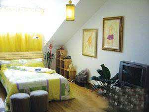 這樣的臥室比較多:斜頂中凹陷一大塊面積形成天窗(俗稱老虎窗)。一般,這樣的臥室室內(nèi)空間面積不大,但斜頂凹陷的天窗開口很大,無(wú)論通風(fēng)和采光條件都很好。 上海裝潢網(wǎng)