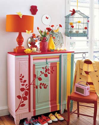 手法2:床上用品,可以多準(zhǔn)備一些彩色的被褥。無論是玫紅色、鵝黃色,還是海藍(lán)色,條紋圖案或是印花裝飾,都是不錯的選擇。