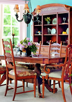 優(yōu)雅沉穩(wěn)的造型、清淡描花的色彩使它有一種法式風(fēng)情,帶著神秘而浪漫的氣息??梢詫⑹釆y鏡獨立于梳妝臺懸掛,也可以斜倚在妝臺面上,緊挨著的三個小抽屜可以存放一些常用的化妝品、小首飾等心愛之物,實用而漂亮。 上海裝潢網(wǎng)