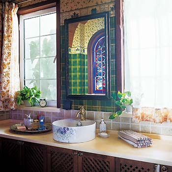 仿古式樣的長形面盆上明媚的鮮花和蟲鳥圖案栩栩如生,就像在恬淡的戶外洗漱一般。 上海裝潢網(wǎng)