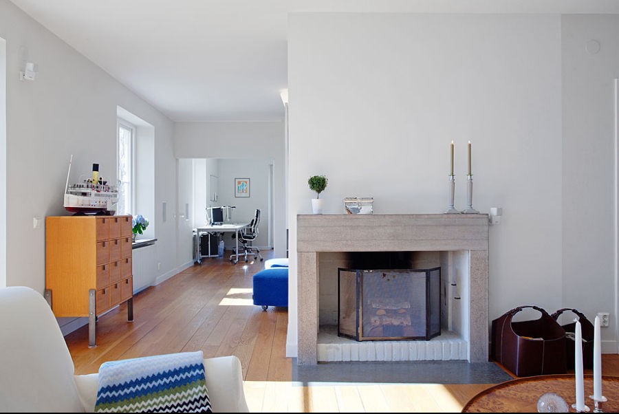 壁爐是歐式風(fēng)格里不可少的,這款簡潔的造型與整個主題統(tǒng)一。過道里的陽光充足,是冬日午后的好去處。