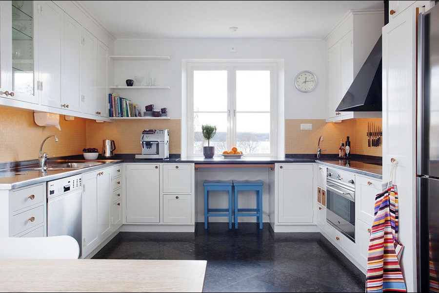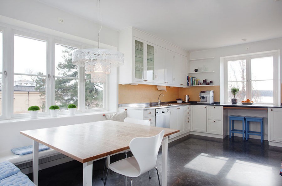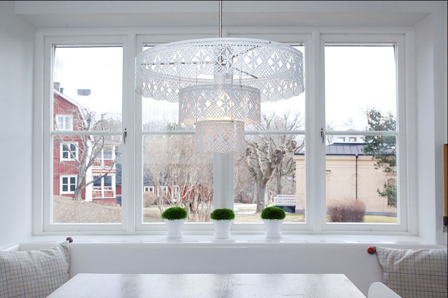 飄窗旁的休息臺,可以是簡單的就餐地,可以暖暖的享受陽光。北歐可以很冷峻,亦可以很溫暖。
