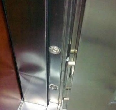 1. 看門框的平整度!以圖為例,由于門框的鋼質(zhì)不夠硬,導(dǎo)致變形。既然是鋼門,但是居然變形了,不用多說(shuō),大家也知道好不好了。