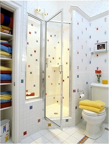 衛(wèi)生間的材料必須以防水材料為主,無論地板、墻磚還是天花板都要具有防水功能。衛(wèi)生間的地板一般會采用大塊的瓷磚,瓷磚不僅防水,而且還要有防滑耐磨功能,并且易于清潔。各種圖案色彩的瓷磚、馬賽克或者有防水功能的塑料墻紙都可以令整個衛(wèi)生間既美觀又時尚。在色彩運用方面,衛(wèi)生間的色彩運用可以十分靈活,可以運用清潔感的白色、藍(lán)色,也可以運用富有浪漫情調(diào)的玫瑰紅或粉紅色,更可以運用代表著神秘與高貴的黑色和金色。