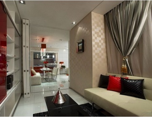 搶眼的紅色不適宜做大面積的底色,但非常適宜做點(diǎn)綴,寬敞的客廳里,可以鋪設(shè)一張毛茸茸的紅色地毯;客廳艷紅色的吊燈、臺(tái)燈都是不錯(cuò)的選擇,讓整個(gè)素色的客廳立刻艷麗許多,富有生機(jī)!