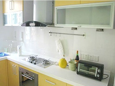 一般可選擇單色調(diào)、淺色系。單色調(diào)、淺色系因有擴(kuò)散和后退性,使居室能給人以清新開朗、明亮寬敞的感受。櫥柜不宜使用黑色、深棕色等較暗的顏色,白色、淺灰色或明亮的奶黃色、淺藍(lán)色等都是不錯的選擇。