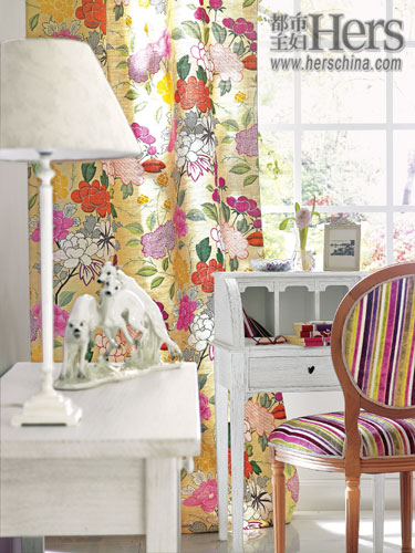 夏季窗簾以麻為上品??咕笟?,析光性好,布面肌理豐富。風(fēng)吹過(guò)來(lái),窗簾松爽得像要起舞。選擇法國(guó)南部鄉(xiāng)村情調(diào)的花色,悠閑的散漫,偏暖的粉彩,可以更好地過(guò)濾陽(yáng)光。如果角度合適,它還有著鐵藝窗花般的效果——當(dāng)光線絲絲縷縷透過(guò)花卉的廓形漏進(jìn)來(lái),也許你的地板上、桌面上就有了蕾絲般優(yōu)美的投影。