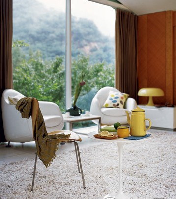 自然風(fēng)格的營造往往會充分利用光線與戶外的環(huán)境,讓天然的風(fēng)景延伸至室內(nèi),與家居裝飾融為一體。落地窗前是青山綠水的美麗景色,寬大的原木餐桌上新鮮的水果帶給人們健康、快樂的心情。藤編的果籃姿態(tài)親切,生活在自然的懷抱中多了一份愜意。