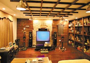 家具在房間中是最自然的吸收、擴(kuò)散體,特別是木質(zhì)家具效果最好,它有纖維多孔性的特征。不同木質(zhì)的吸音程度不同,較松軟的木質(zhì)吸音更好,如松木。另外,擺放時(shí)不要放對(duì)聲波反射太強(qiáng)的大玻璃柜和易引起震動(dòng)的金屬畫(huà)以及輕質(zhì)的擺設(shè)物陳列品,而且擺放書(shū)本或CD碟時(shí)也要高低起伏、錯(cuò)落有致,才會(huì)增加反射面產(chǎn)生擴(kuò)散作用。如果將書(shū)柜放置在與鄰居家相鄰的墻壁前,可以適當(dāng)阻隔鄰居家傳來(lái)的聲響。